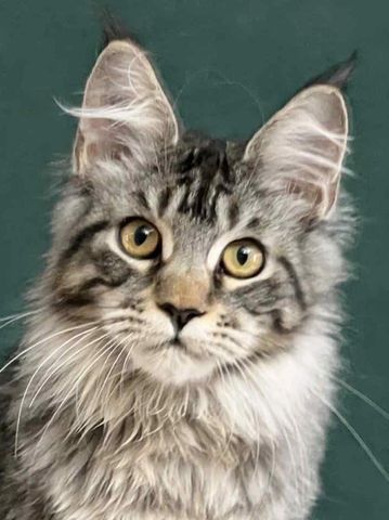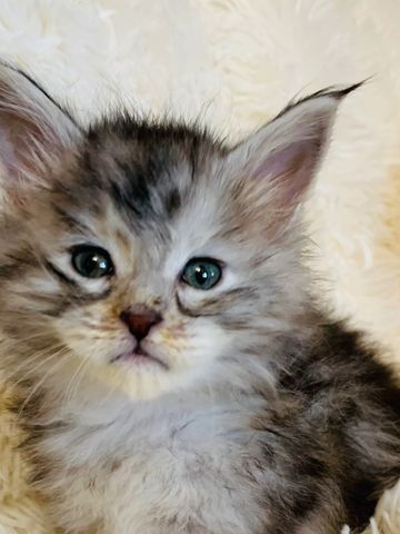 blue silver tabby. Dad is giant Esik. Mom is winning Queen.